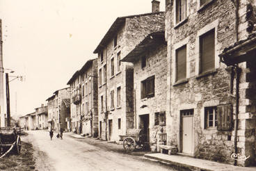 Succession de façades XIXeme aux belles portes de granges taillées, lit régulier de pierres, élevées ou surélevées pour les besoins jadis du tissage à domicile.