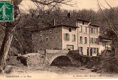 A la Courbatière on peut accéder au vignoble du Plan. Le pont de Sécheron a remplacé "la planche" à l'initiative des habitants du hameau. Elle permettait aux habitants de Jujurieux d'atteindre le moulin de Sécheron (Saint-Jean-le-Vieux) installé sur la rive gauche, certainement le plus ancien sur la rivière, et de grand importance pour Jujurieux. Le projet est présenté au conseil en Août 1846. Le conseil vote la somme à fournir (moitié avec Saint-Jean) le 03 Novembre 1846. Il est réalisé certainement en 1847.