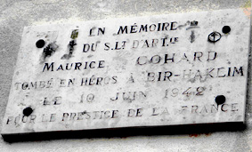 Une Plaque commémorative en mémoire du sous-lieutenant d’artillerie Maurice Cohard.