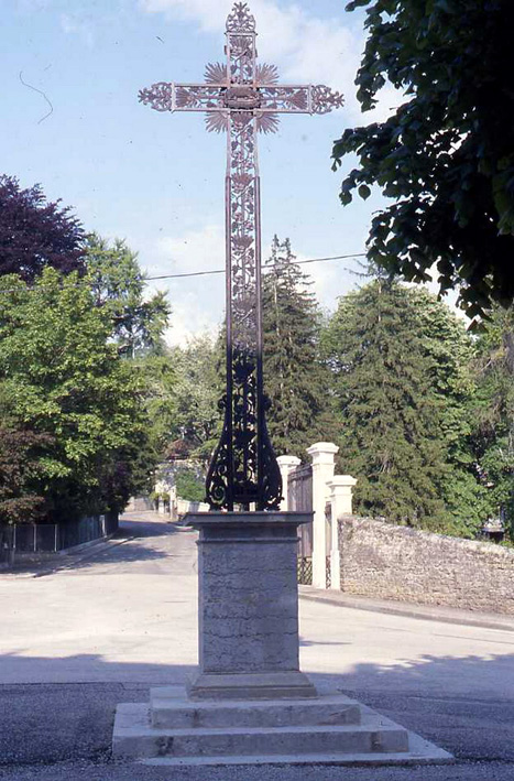 Croix de Mission, au carrefour du bas du pays, près de la maison médicale. Haute croix en fer forgé finement travaillé où l’on peut remarquer un agneau, un cœur et une guirlande avec des raisins et des épis. Le socle en pierre plus ancien comporte l’inscription "Mission 1846".