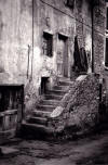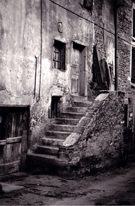 La ruelle fait un arc. L’accès se fait par un passage couvert.