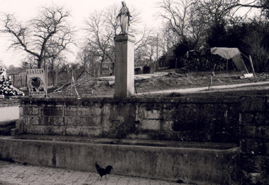 En haut du hameau, un bassin rectangulaire monolithe, est adossé à un mur de soutènement, et se trouve surmonté par une statue de la Vierge en fonte. Il est alimenté par une source éloignée, côté Breignes. L’altitude de ce hameau a fait qu’il était nécessaire de trouver une source plus haute que les autres pour pouvoir amener l'eau dans le village. La première canalisation était en terre cuite, elle ne fut pas enlevée lors du remplacement par les tuyaux métalliques.