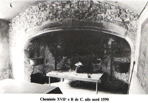 Au rez-de-chaussée, deux magnifiques cheminées monumentales rappellent qu'un abbé d'Ambronay fit rebâtir l'édifice entre 1590 et 1598. L'une (1590) orne une grande salle voûtée dans l'aile nord et l'autre (1598) une pièce dont l'agrandissement à révélé l'existence de peintures murales . Il est intéressant de noter la forme quadrangulaire de l'ancienne bâtisse, retrouvée par P. Cattin sur un plan cadastral de 1830.