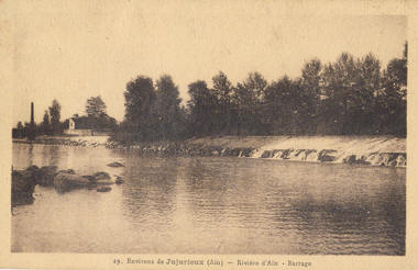 La rivière d’Ain, à l’Ouest, délimite la commune sur quelques kilomètres. En amont de l’embouchure de l’Ecotet, en diagonale, un barrage permet par un canal d’alimenter en eau l’usine électrique d’Oussiat. En 1866 fut établie en accord avec le syndicat des moulins d’Oussiat, une digue sur la rive gauche, afin de protéger les terrains de la commune. La solidité de ces travaux d’endiguement fut remis en question à propos du bourrelet d’enrochement du barrage quand en 1889, Mr Seigle propriétaire de l’usine fit rehausser l’ouvrage afin d’acquérir une force motrice plus conséquente pour son usine. Les 9 et 14 mars 1896, la digue cédait provoquant de graves inondations au Blanchon, quartier de Pont-d’Ain.