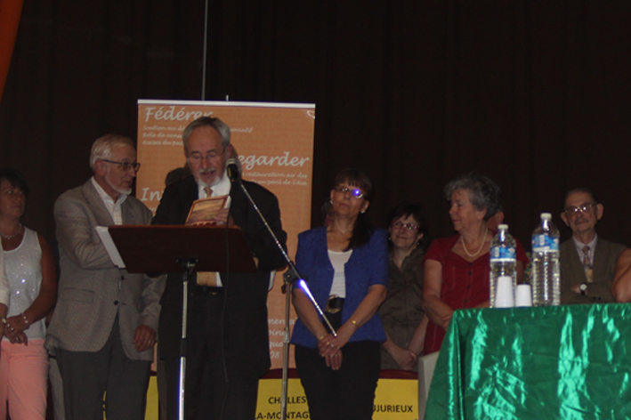 C'est dans la salle du Foyer Rural de Poncin qu'en ce jour d'été fut consacrée la sortie du pré inventaire des "Richesses touristiques et archéologiques du canton de Poncin". En ce jour tant attendu, nombreux sont venus pour savourer cet instant et le partager dans une joie non dissimulée. Le solennel était au rendez vous et les personnalités présentes, Mrs Giroud, Chabry, Greffet, Rodet, ont su trouver les mots justes pour replacer cet événement dans son contexte. Un ouvrage a été remis à chacun des maires de nos communes. Jean Pierre Gerfaud, chef d'orchestre brillantissime, par des lectures choisies de l'ouvrage, a su captiver un auditoire intéressé et récompenser les nominés parmi lesquels Lucie Gouilloux et Frédéric Thouny, sans qui cet ouvrage n'aurait pu sortir à temps et Jacques Ruty pour ses précieuses réalisations cartographiques. La cérémonie s'est achevée autour d'un buffet bugiste. Nous avons eu une pensée pour ceux qui ont contribué à la réalisation de cette œuvre de longue haleine et qui ne sont plus.