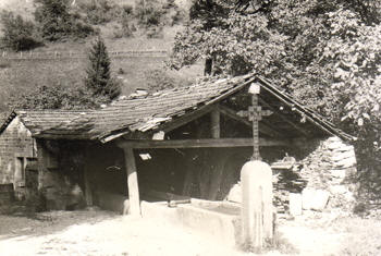 Le lavoir et sa fontaine surmonté d'une croix (avant restauration)